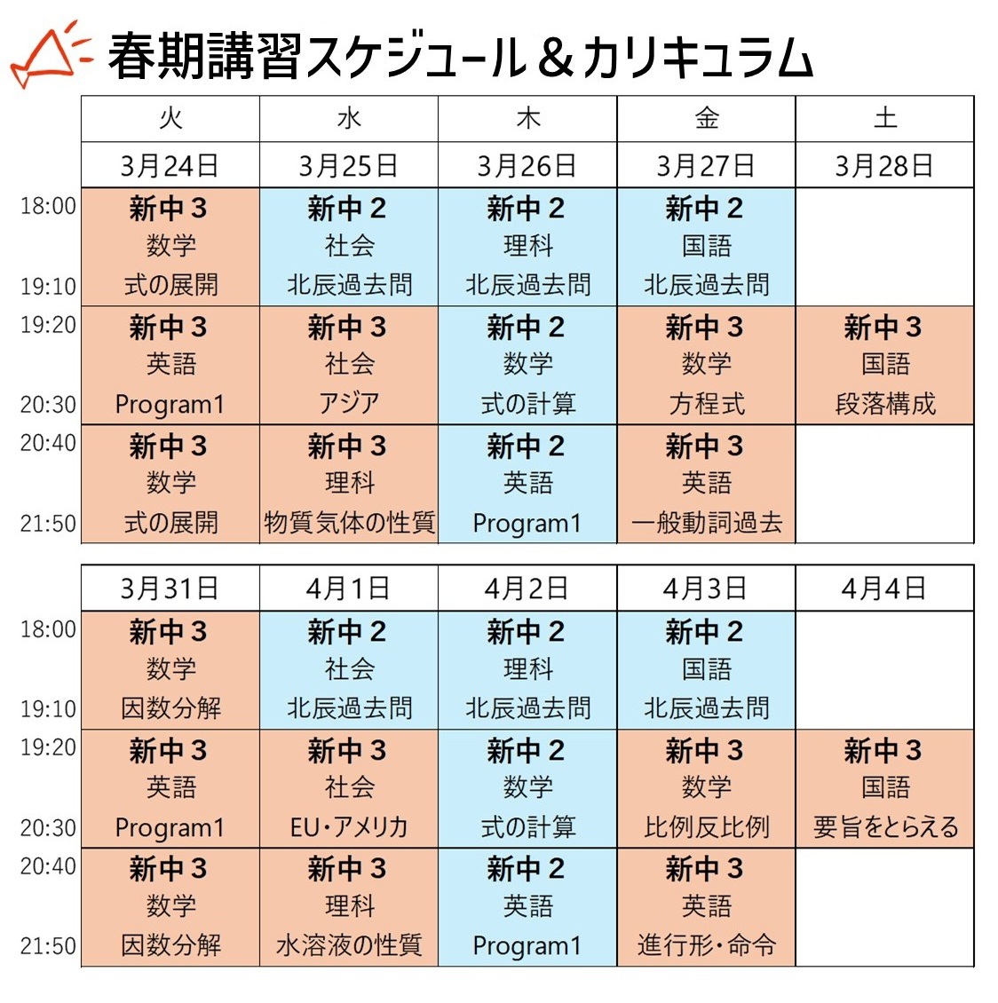 2026年度春期講習